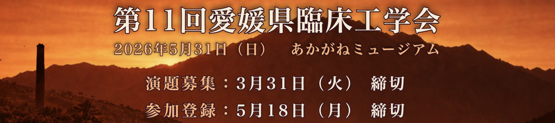 平素より(一社)愛媛県臨床工学技士会活動にご理解とご協力を賜り、誠にありがとうございます。 このたび、2026年5月31日(日)に新居浜市にて開催予定の「第11回愛媛県臨床工学会」につきまして、参加申込を開始いたしましたのでご案内いたします...